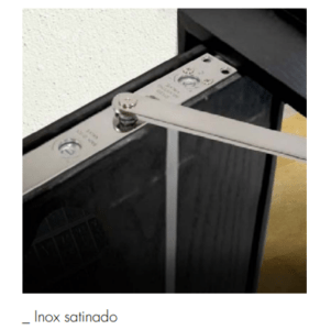 Pivot motorisé caché dans le vantail (en option) : Il s’agit d’un système d’engrenage mécanique qui permet une ouverture et une fermeture automatiques. Ce système nous permet de programmer la vitesse de fermeture et d’ouverture en plus du temps d’attente dont nous avons besoin pour accéder à notre maison. Ce mécanisme est conçu pour intégrer des systèmes domotiques tels que l’empreinte digitale, le clavier à code d’accès ou le contrôle Wi-Fi, ainsi que des systèmes intégrés -dans les systèmes intelligents, dans notre maison. Charge structurelle 350 kg.
