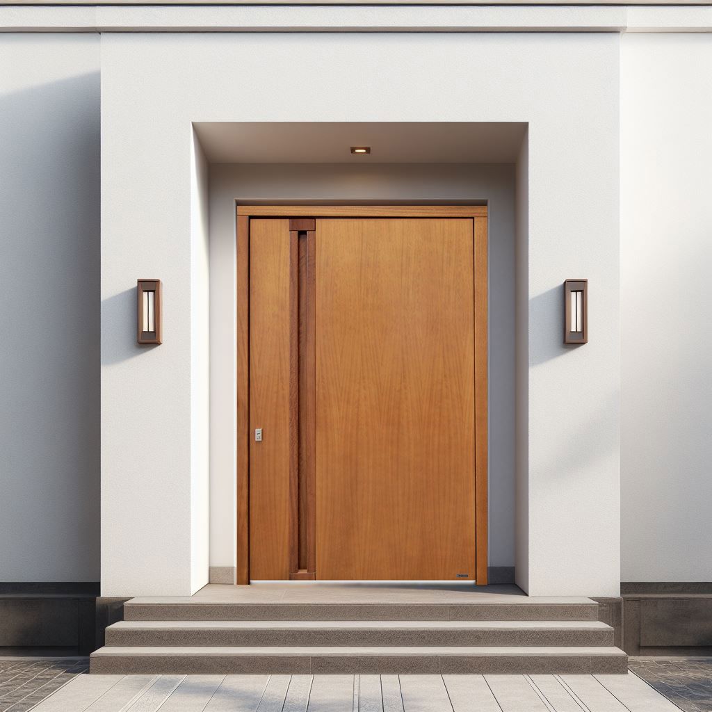 Nos portes sont fabriquées avec une structure en acier résistante et une âme isolante, garantissant durabilité et performance. Les planches sont en okoumé (bois tropical), plaquées en iroko ou chêne naturel, une méthode de fabrication idéale pour les portes extérieures. Cette combinaison permet d’obtenir une porte inaltérable face aux conditions climatiques difficiles.