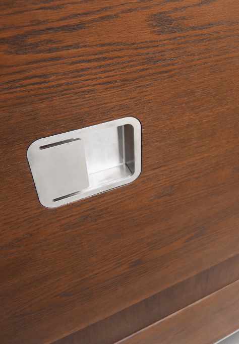 Cette porte offre un grand pouvoir isolant, grâce à une couche de matériau isolant à l’intérieur. Pour une isolation totale, toutes nos portes sont équipées de caoutchouc isolant sur tout le périmètre du dormant et de brise-vent automatiques en partie haute et basse du vantail, garantissant une isolation thermique et acoustique optimale.