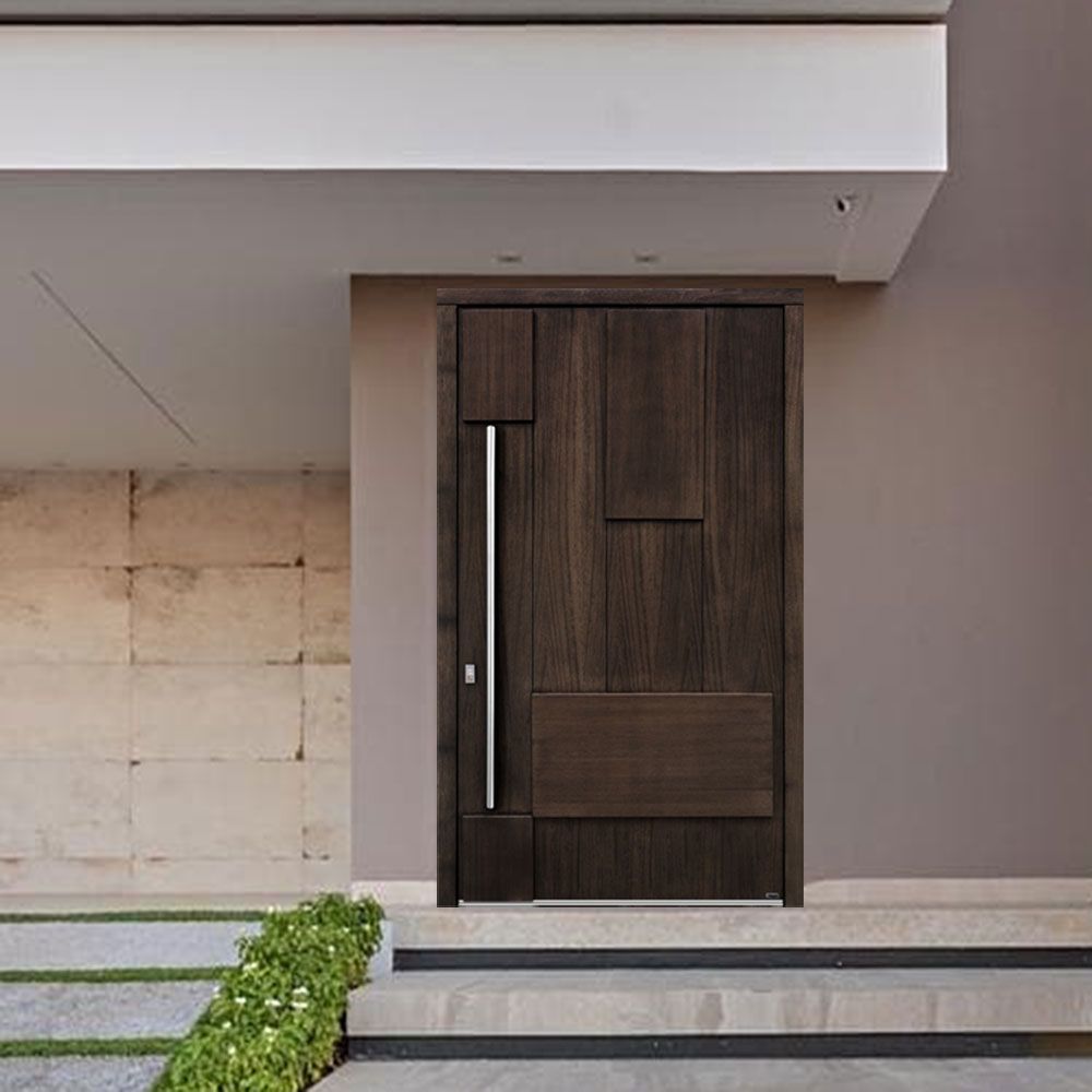 Porte en bois d’iroko ou de chêne sur mesure : design, qualité et personnalisation. Notre porte pivotante Paris en bois sur mesure est le choix idéal pour ceux qui recherchent un équilibre parfait entre élégance, durabilité et polyvalence. Fabriquée en deux types de bois de haute qualité, l’iroko ou le chêne, cette porte offre une solution idéale pour les espaces intérieurs et extérieurs, apportant chaleur et style à n'importe quel environnement. De plus, vous pouvez personnaliser la finition en sélectionnant parmi notre vaste nuancier de couleurs, afin d’adapter le design à vos besoins et préférences esthétiques.